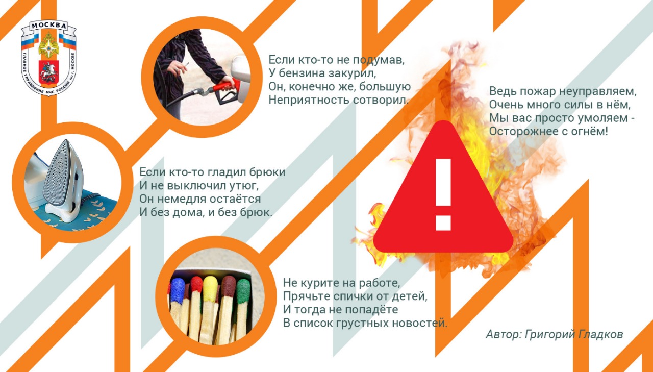 25.10.2024В связи с наступлением осенне-зимнего пожароопасного периода в целях принятия дополнительных мер по профилактике возникновения пожаров и повышения уровня противопожарной защищённости объектов и территорий города Москвы, а также предотвращения гибели и травмирования людей на пожарах, ознакомьтесь со следующими ПАМЯТКАМИ